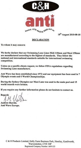 Liny torowe stosowane na basenie olimpijskim w Szczecinie, basenie AWF Warszawa oraz w kilkunastu innych ośrodkach w kraju - pełna lista referencyjna dostępna na życzenie. Poniżej do pobrania karty techniczne, deklaracje oraz aktualny atest PZH.
