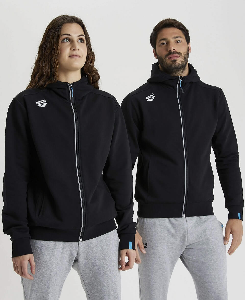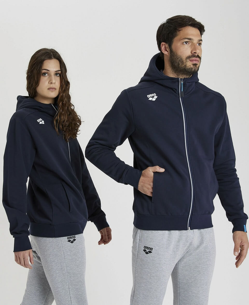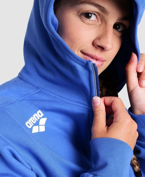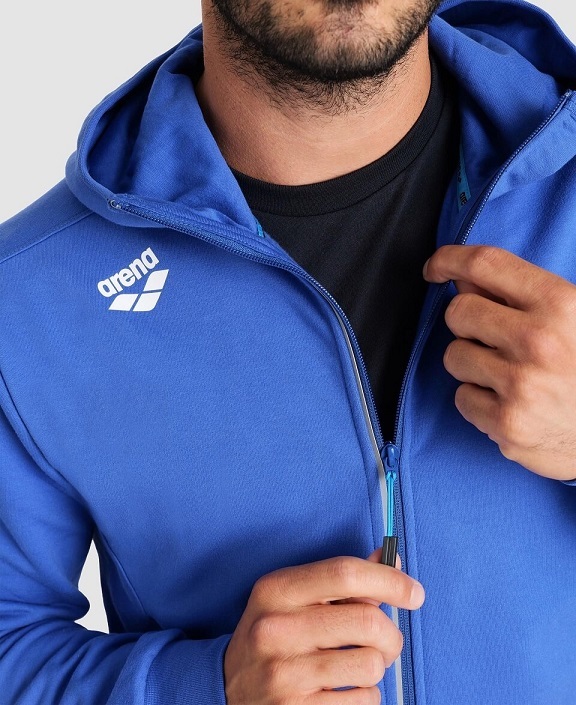 Rozpinana sportowa bluza będąca częścią najnowsze kolekcji Arena Team Line inspirowanej mistrzami i mistrzyniami pływania, którą opracowano specjalnie dla stowarzyszeń pływackich. Rozpinana bluza z kapturem Arena Team Hooded jest idealna do uprawiania sportu i rekreacji. Wykonana ze szczotkowanego, elastycznego materiału jest przyjemnie miękka i zapewnia optymalną swobodę ruchów.