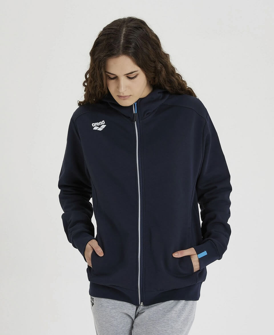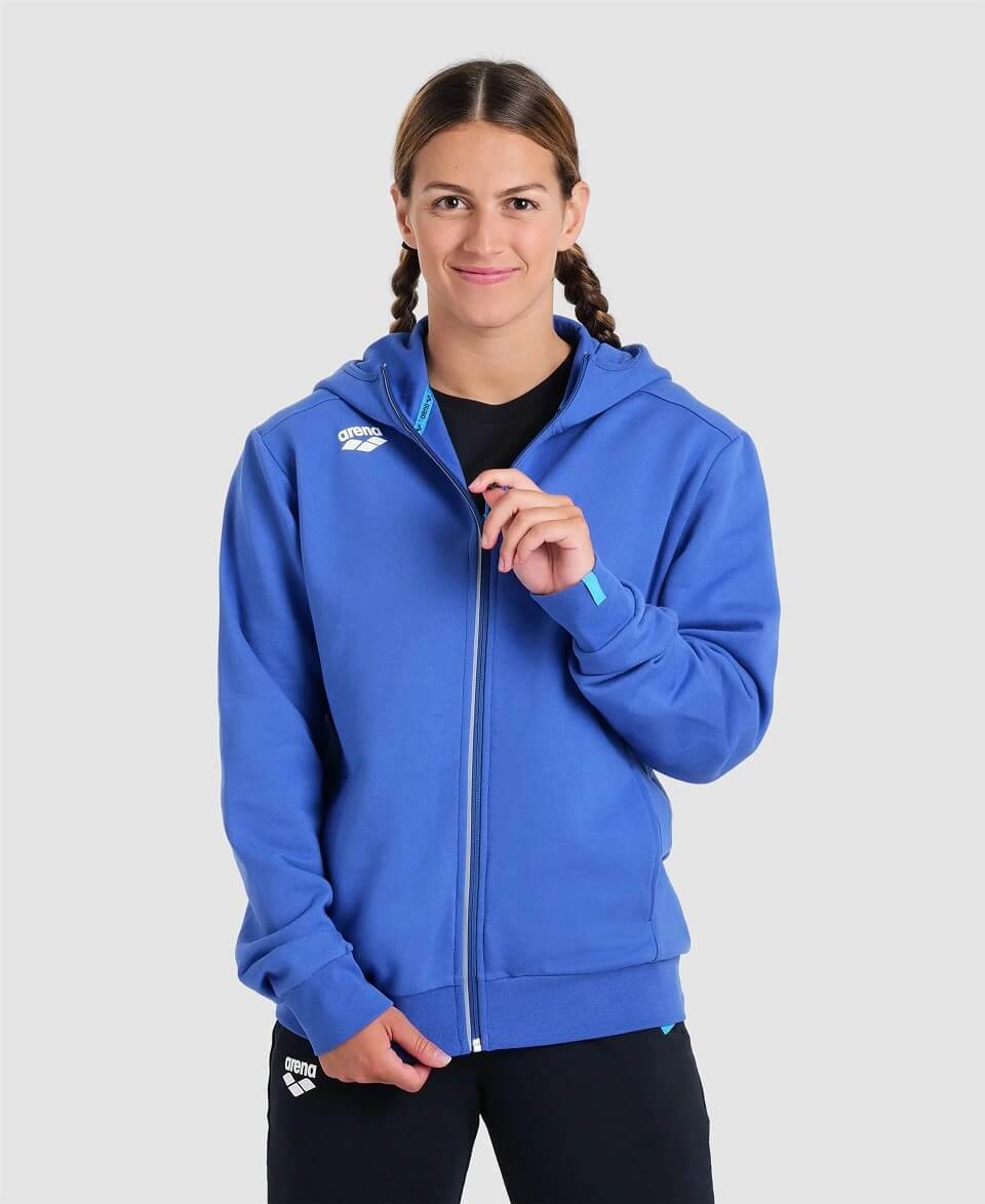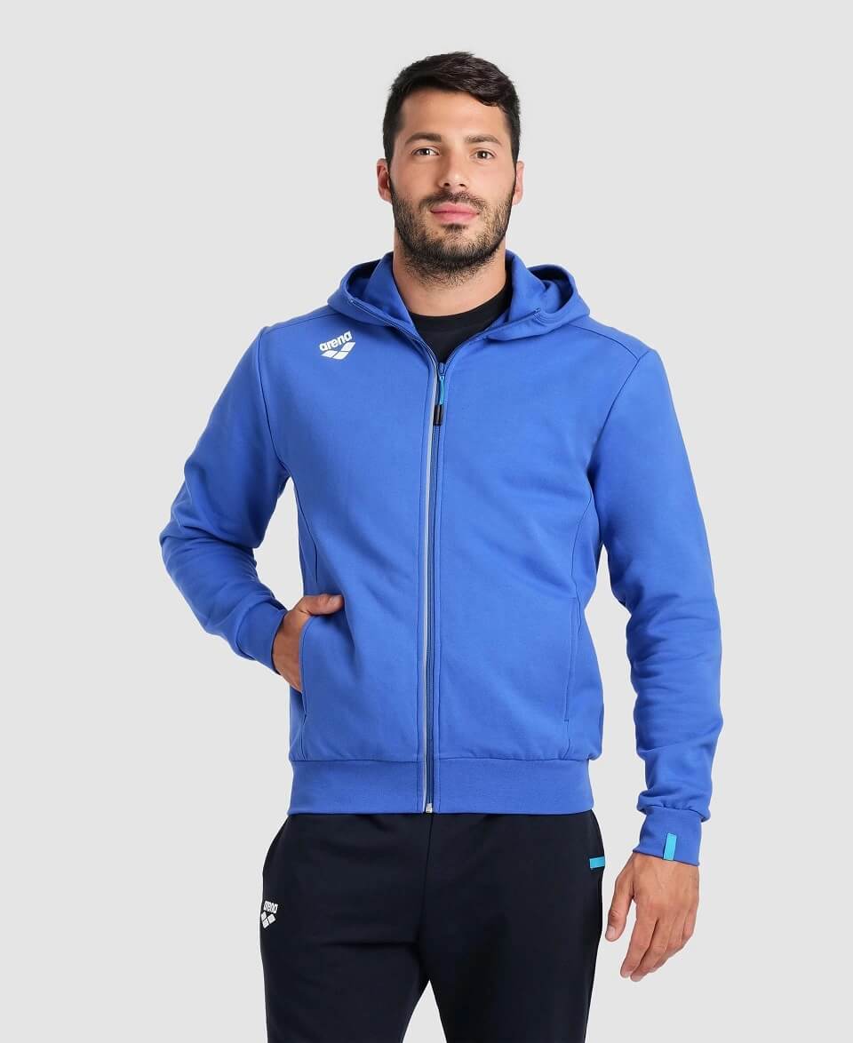 Rozpinana sportowa bluza będąca częścią najnowsze kolekcji Arena Team Line inspirowanej mistrzami i mistrzyniami pływania, którą opracowano specjalnie dla stowarzyszeń pływackich. Rozpinana bluza z kapturem Arena Team Hooded jest idealna do uprawiania sportu i rekreacji. Wykonana ze szczotkowanego, elastycznego materiału jest przyjemnie miękka i zapewnia optymalną swobodę ruchów.