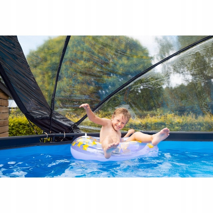 • Solidne, wielofunkcyjne zadaszenie - nie będziesz już zależny od pogody, dodatkowo kopuła chroni przed dostawaniem się zanieczyszczeń do basenu i zatrzymuje ciepło promieni słonecznych.
