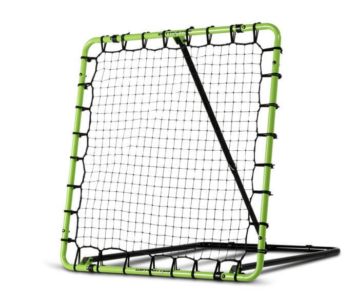 Trenażer przeznaczony do trenowania umiejętności gry w piłkę. Nadaje się do różnych sportów, od piłki nożnej, siatkowej, ręcznej po piłkę wodną. Konstrukcja zestawu jest niezwykle lekka i łatwa do przenoszenia nawet przez dzieci. Rebounder EXIT Toys można regulować pod różnymi kątami, co pozwala określić, w jaki sposób piłka ma się odbijać. Możliwa zmiana kąta nachylenia w zakresie od 35° do 90°. Do zestawu dołączony jest komplet kotew mocujących, umożliwiający stabilne zamocowanie na naturalnej nawierzchni, dzięki czemu sprzęt nie będzie zmieniał swojego położenia podczas używania. Trening z  trenażerem Exit Tempo jest niezwykle prosty. Wystarczy wybrać właściwy kat nachylenia, lekko oddalić się od siatki, a następnie rzucić lub kopnąć piłkę w jego stronę. To doskonałe ćwiczenie szybkości reakcji na powracającą piłkę, ponieważ nie zawsze wraca ona w to samo miejsce. Często trenażery wykorzystywane są do nauki kontroli nad przyjmowaną piłką. Możliwa zmiana kąta nachylenia w zakresie od 35° do 90°.
