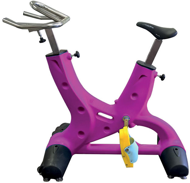 Rower Hexa Bike Optima jest wykonany z materiałów odpornych na działanie chemii basenowej. Korpus wytworzony jest z polipropylenu co w znacznym stopniu eliminuje wystąpienie uszkodzeń ciała z uwagi na brak ostrych krawędzi. Ruchome części wykonane są ze stali nierdzewnej z 7-letnią gwarancją antykorozyjną. Rower dostosowany do basenu o głębokości pomiędzy 120 a 170 cm. Może być użytkowany zarówno w butach wodnych jak i bez. Transport roweru jest ułatwiony za sprawą 2 rolek zamontowanych w przedniej podstawie.
