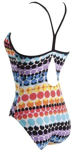 SPOTFIRE SPLICEBACK to jednoczęściowy strój kąpielowy o ciekawym kroju i designie. Góra kostiumu wykończona została czarną lamówką, która przechodzi w cienkie ramiączka. Tworzą one na plecach literę V, która łączy się z zakrytymi plecami stroju. Ciekawie prezentuje się otwarty wzór w kształcie łezki na plecach. Kostium wykonany został z trwałego materiału, który jest wysoce chloroodporny. Jego duża elastyczność gwarantuje, że dobrze przylega do ciała.