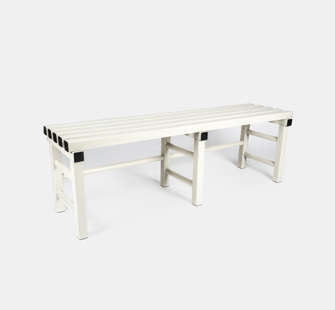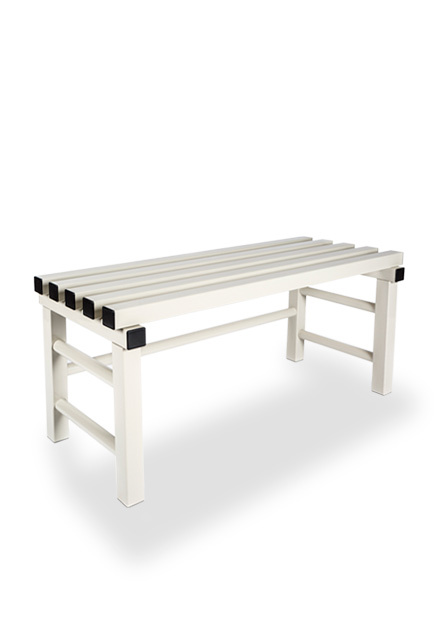 Ławka hiszpańskiego producenta Decoplastic wykonana z wysokiej jakości żywicy termoplastycznej PVC (profile 55x45 mm) w standardowej wersji. Obok zastosowań w przebieralniach świetnie nadaje się do ustawienia przy niecce basenowej a także w każdej możliwej innej lokalizacji wewnątrz budynku jak i na zewnątrz. Tworzywo posiada wysoką wytrzymałość, obciążenie do 200 kg/mb, oraz zachowuje swe właściwości w pełnym zakresie temperatur od -40 do +80 st. C. Ważne jest to, że materiał nie ulega korozji jest odporny na chlor. Wszystkie produkty są całkowicie bezpieczne ponieważ posiadają zaokrąglone krawędzie i mogą być łączone w estetyczną całość z innymi elementami z serii. Dostarczana w zestawie do samodzielnego montażu, co pozwala zaoszczędzić kosztów transportowych.