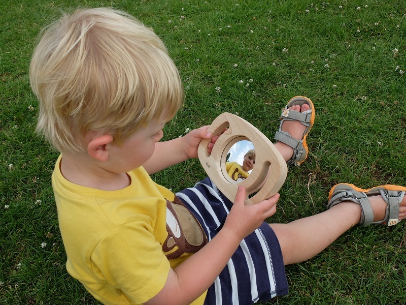 Poręczne lusterko akrylowe do autorefleksji, do wspólnej gry grupowej i odgrywania ról. Lusterko mieści się się w ramce z wygodnymi uchwytami wykonanej z litego drewna kauczukowego, przez co jest zarówno niezwykle wytrzymałe, jak i łatwe do trzymania i manipulowania nim przez młodzież.