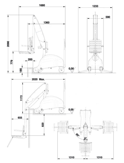 • 4 koła o średnicy 200 mm