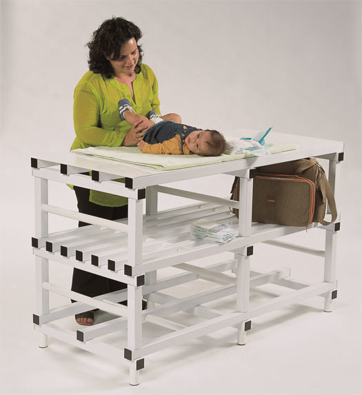 Duży przewijak z płaskim blatem na wierzchu, szerokość aż 135 cm pozwala dwóm mamom przewijać swe pociechy równocześnie. Miejsce na akcesoria pod blatem. Głębokość 75 cm, wysokość 92 cm.