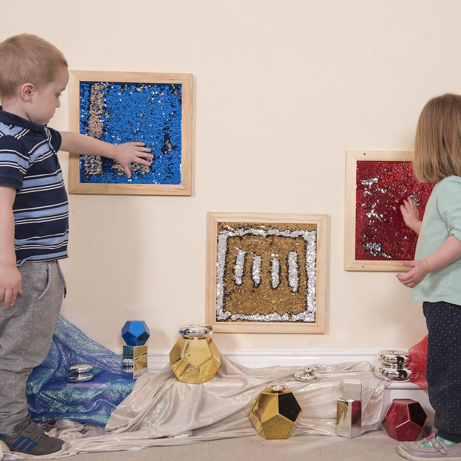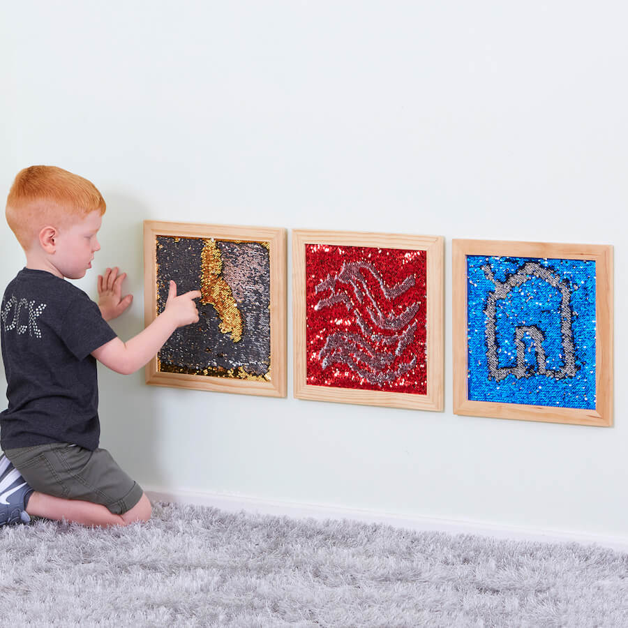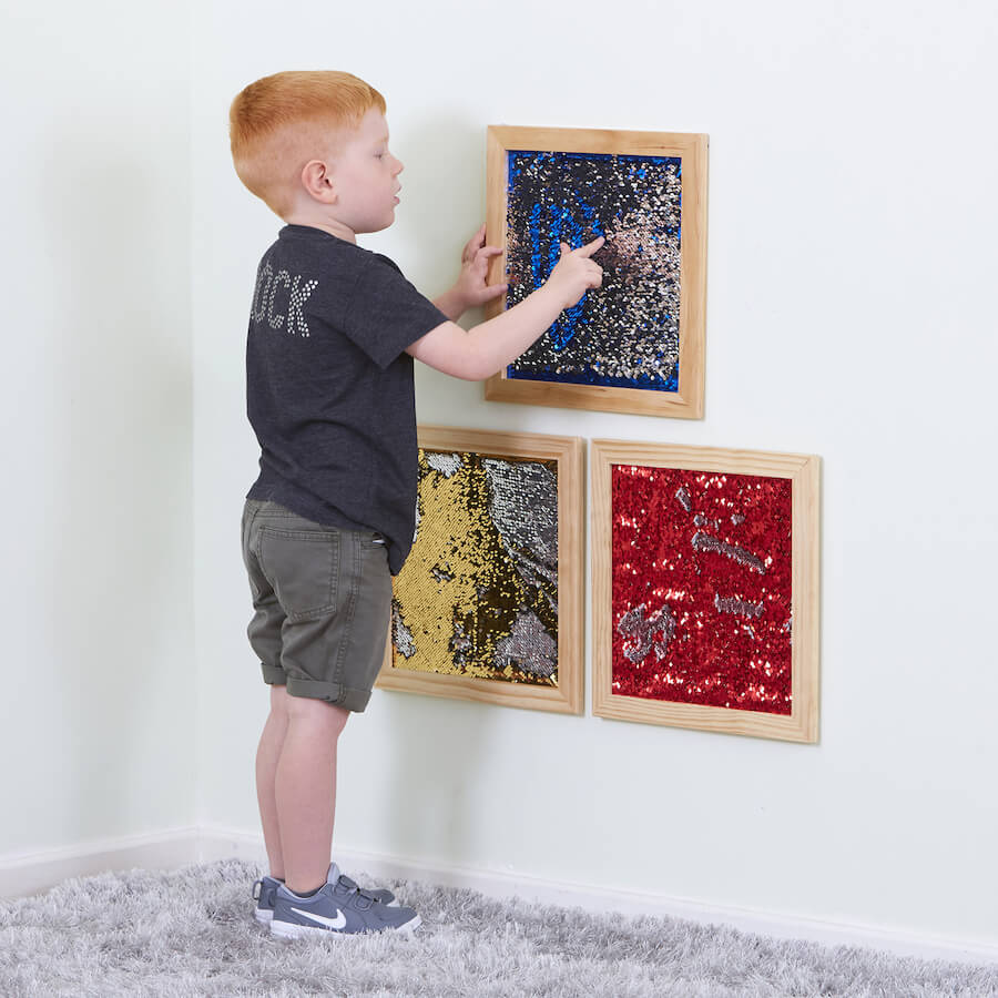 Zestaw składający się z 3 paneli sensorycznych wypełnionych specjalnymi cekinami, które po przesunięciu palcem czy dłonią zmieniają kolor, gwarantując najmłodszym użytkownikom stymulację zmysłu wzroku i dotyku w formie zabawowej. Dzięki estetycznej, drewnianej ramie oraz atrakcyjnej kolorystyce panele przyciągają uwagę i sprawiają, że dzieci chętnie z nich korzystają, tworząc różnego rodzaju wzory i rozwijając swoją kreatywność. Sensoryczne panele ścienne to zestaw, który dzięki swoim właściwościom znajdzie zastosowanie w placówce edukacyjnej, rehabilitacyjnej czy salach sensorycznych.