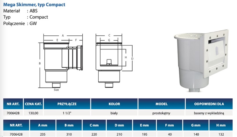 Skimmer basenowy prostokątny compact do basenu foliowanego