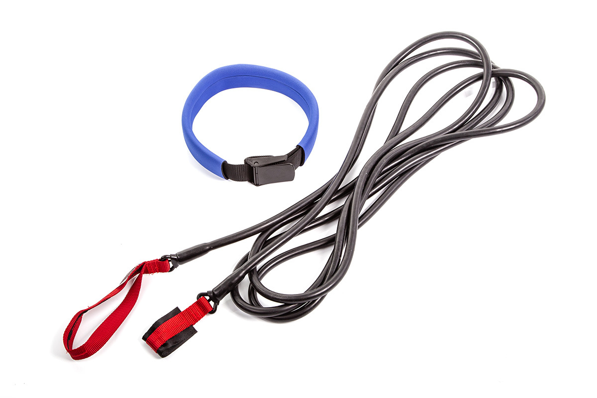 Kultowy produkt używany w wielu klubach pływackich na całym świecie. Wykorzystywany w celu zwiększenia wytrzymałości i siły w wodzie. Guma składa się z wytrzymałego zaczepu, którym obwiązujemy możliwe miejsce na słupku startowym, rozciągliwej gumy o różnych oporach oraz regulowanego pasa biodrowego owiniętego miękka pianką. Dla bezpieczeństwa pływającego zastosowano po całej długości tubing ze specjalną nylonową nicią, która chroni przed nadmiernym rozciągnięciem i pęknięciem. Produkt został wykonany w USA, o czym świadczy wysoka jakość wykonania.