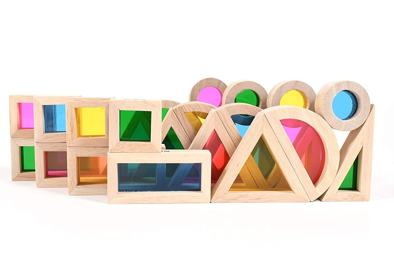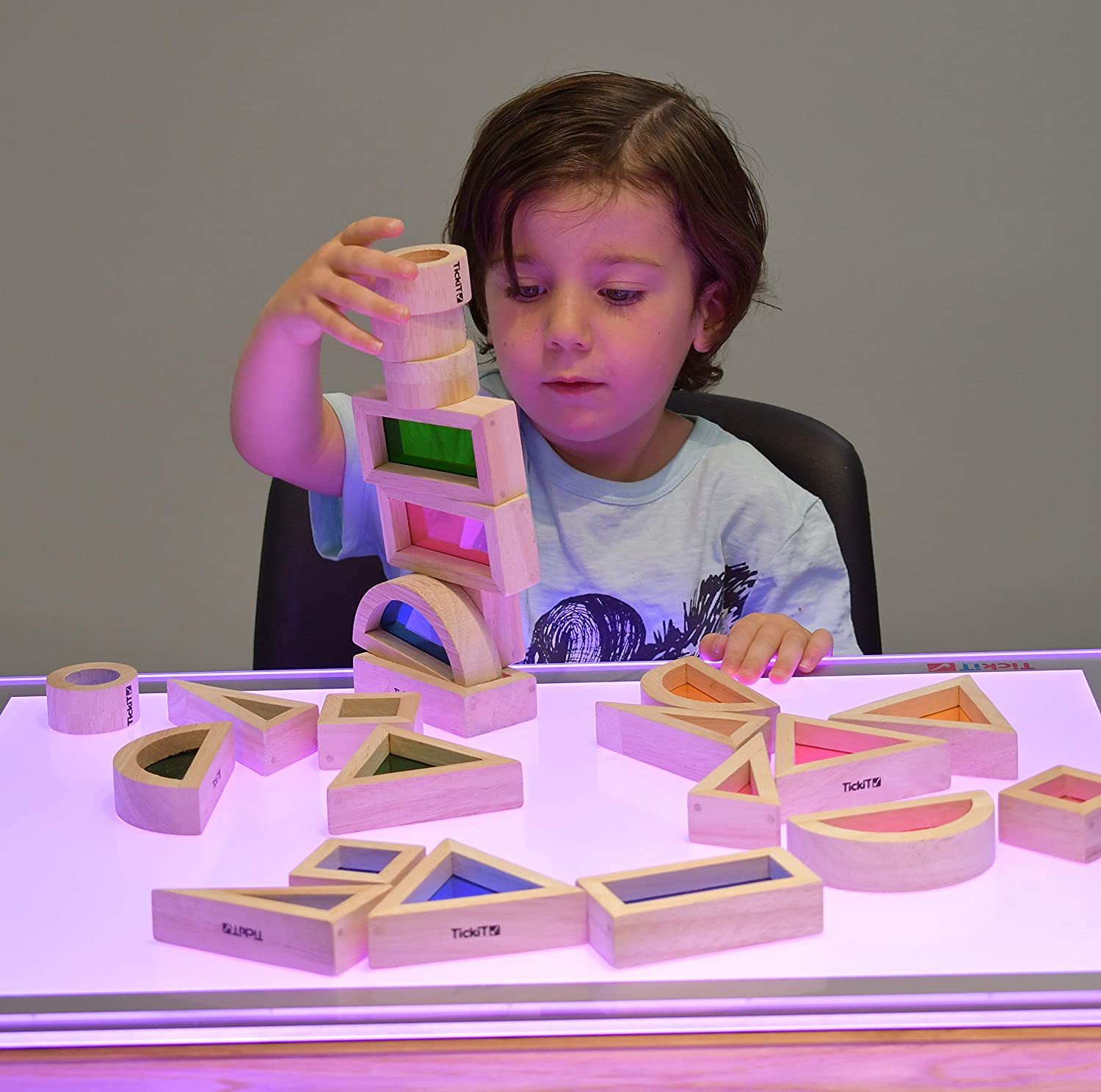 W komplecie znajdują się klocki o sześciu różnych kształtach z czterema różnymi przeźroczystymi wkładkami. Klocki można używać na wiele sposobów. Dzieci w trakcie zabawy mogą poznać różnego rodzaju kształty oraz to jak one się zachowują w trakcie tworzenia różnych konstrukcji. Dzięki kolorowym wkładkom dzieci poznają kolory oraz jak zachowują się różne źródła światła.