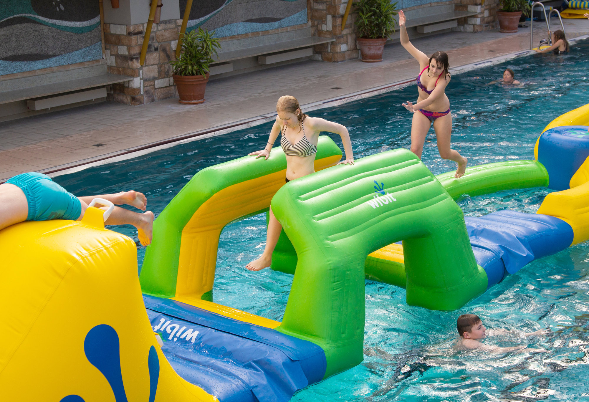 Pamiętasz poręcze olimpijskie? Teraz sam możesz spróbować swoich sił w przechodzeniu na drugą stronę. Pamiętaj jednak jeśli zabraknie Ci sił to kąpiel jest nieunikniona.